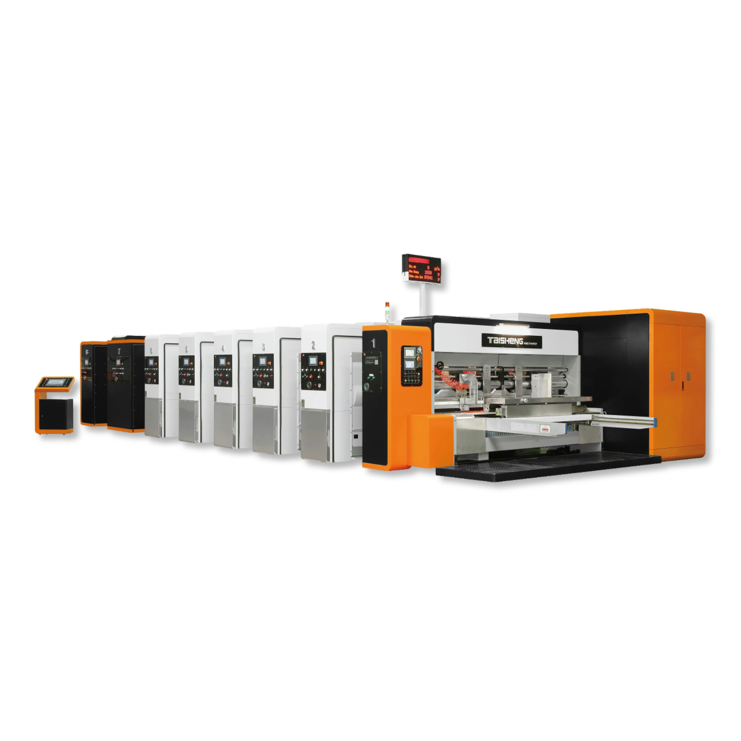 新一代操作方便的紙箱后段設備,高速水性印刷開槽(模切)機,鏈條水性印刷開槽機,水性滾筒直印刷機,輪轉開槽切角機、薄刀分紙壓線機等等。